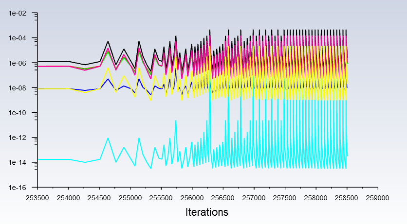 我按上面 cccrrryyy 老师的提示,监视了 速度、温度、压力的变化,发现他们都在波动,甚至还没达到周期性变化,可残差曲线是收敛的趋势。由于我想保证它每个时间步长内,都要在30步内收敛,所以采用的时间步长是0.000001s,现在才算了,0.0188s。我在想这是算的时间还不够吗?我都算了好几天了,有点纠结要不要算下去。请老师指点。