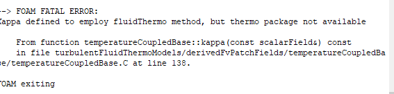 这个求解器是不可压缩的求解器,他单独求解温度方程,没有用用到热物理模型库,所以就不支持这个边界条件,fluidThermo是热物理模型库的方法。 你可以去看看buoyantPimpleFoam或buoyantSimpleFoam下面的算例,这些算例的constant文件夹下都有thermophysicalProperties这个字典,这些求解器也都用到了热物理模型库求解焓方程,并且支持这个边界条件。