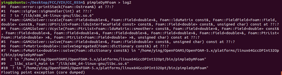 圆柱振动到0.2D左右时,算例会突然崩掉,报错: